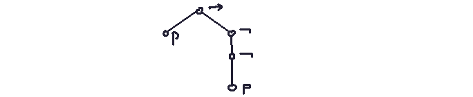 Consider the formula p -> (not not p).