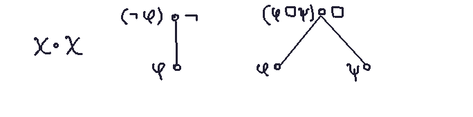 Leaf nodes: Copy the symbol (e.g., p) to the left-hand side.Negation nodes: For a node labeled "not", write not φ , where φ is the formula from the daughter node.